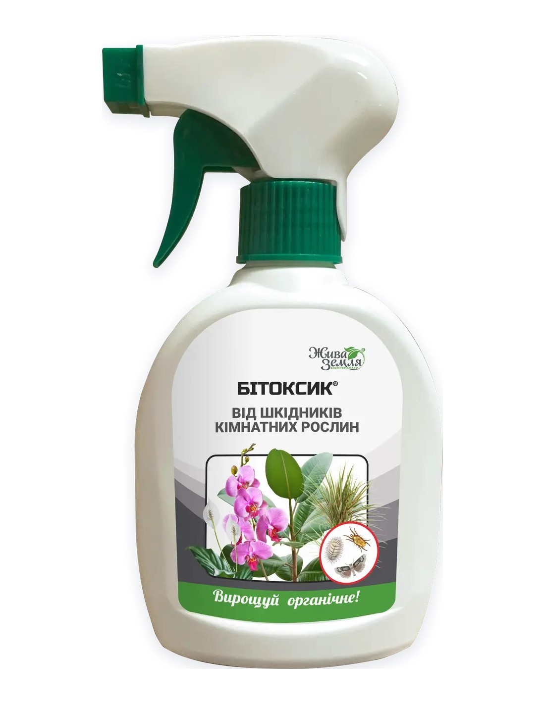 Инсектицидный биопрепарат Битоксик в форме спрея, применяется для биологической защиты комнатных и балконных растений против комплекса насекомых-вредителей, а также для улучшения их роста и питания. Действующей основой данного препарата являются жизнеспособные клетки Bacillus thuringiensis, эндоспоры и биологически- активные продукты жизнедеятельности бактерий. Попадая с листьями растений в организм вредителей, вещество вызывает у них нарушение функций кишечника и способности насекомого переваривать пищу. Аппетит насекомых снижается через несколько часов после проникновении препарата в тело вредителя. Затем активированный в кишечном тракте токсин вызывает повреждение внутренней оболочки кишечника насекомого, в результате чего, происходит приводящее просачивание щелочного содержимого кишечника в полость его тела. Споры прорастают и размножаются в полости тела насекомого. Как следствие, гибель паразитов наступает через 1–4 дня. Экоинсектицид Битоксибациллин эффективно используется для защиты петунии, пеларгонии, розы, орхидеи, фиалки, пуансеттии, нарцисса, антуриума, бегонии, фуксии, герберы от паутинного и цикламенового клеща, грибного комарика, всех видов тли, белокрылки, гусеницы, моли, пилильщика, трипса, огневки, листовертки, крестоцветных блошек и многих других насекомых.