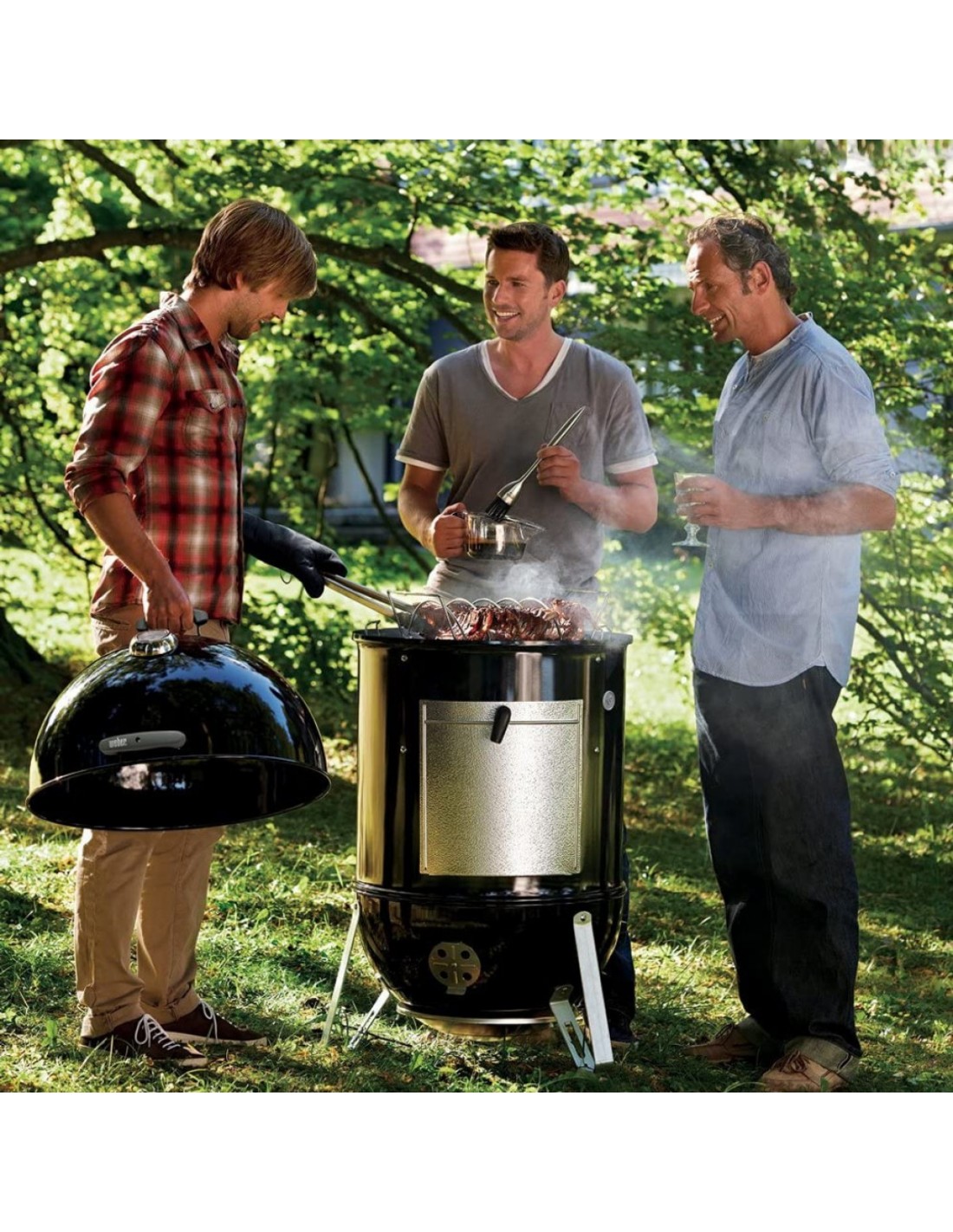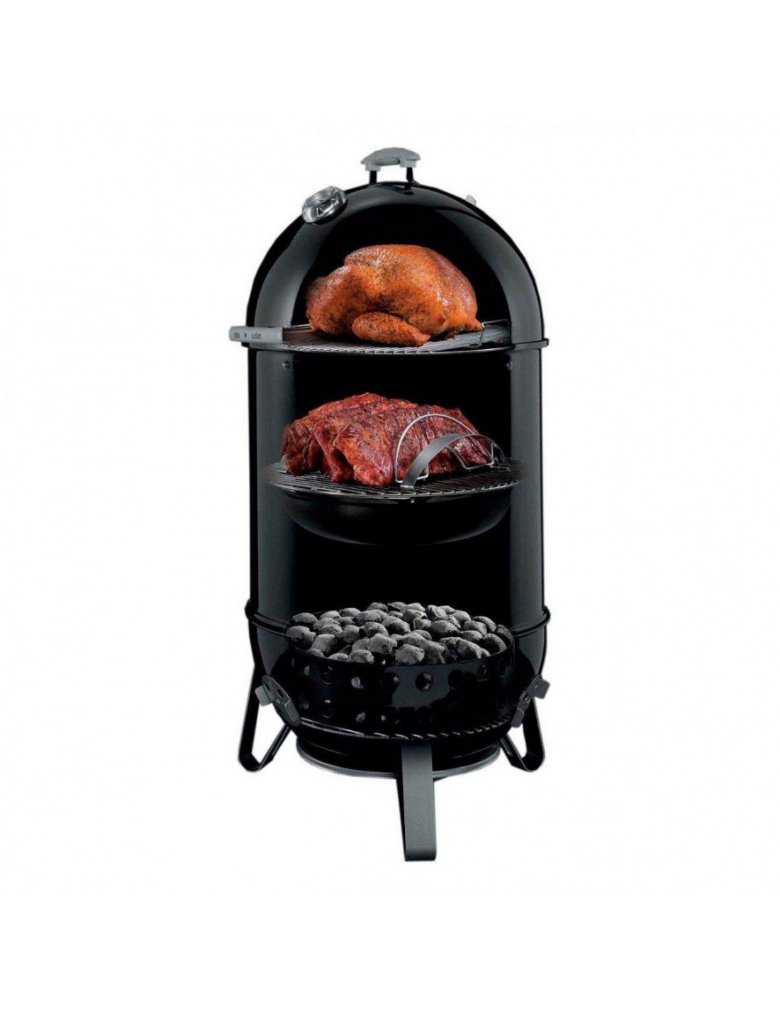 - Кришка, котел і ємність для води, виготовлені з жароміцної сталі, покритої порцелянової емаллю зсередини і зовні. Гриль можна залишати на вулиці в будь-яку погоду.